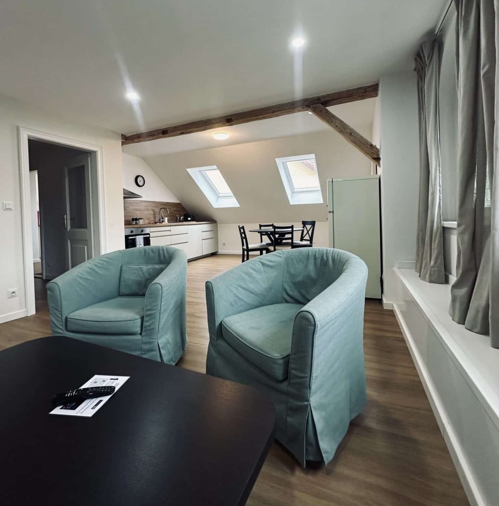 V historické části Tachova, v památkové zóně nedaleko centra, najdete krásně zrekonstruovaný historický dům s 8 moderními apartmány. Přízemí a první patro domu nabízejí po třech apartmánech, zatímco ve druhém patře jsou dva pohodlné mezonetové apartmány. V přilehlém zahradním domku lze také bez problémů uskladnit a dobít elektrokola. Na zahradě je možné posezení a možnost grilování. V blízkosti apartmánového komplexu se nachází historické centrum města (cca 100-200m ), kde najdete skvělé restaurace s venkovním posezením jako Mami Restaurant, River Restaurant, Pop-Art café, nebo kavárna u Vennyho . Pokud se rozhodnete tuto možnost využít, na konzumaci vám nabídneme slevové vouchery. Pro sportovní nadšence je Tachov téměř ideální volbou vzhledem k vybudovanému sportovnímu komplexu jako je plavecký bazén, venkovní koupaliště, tenisové a bowlingové centrum, zimní stadion, skate park, fotbalový a hokejový stadion, které jsou vzdáleny cca 300 metrů. Rozhodně nezapomeňte při svém výletě do Tachova navštívit zdejší zámek, kostel Nanebevzetí panny Marie, jízdárnu Světce, nebo muzeum Českého lesa. Cyklostezky na Vaše výpravy Českým lesem objevíte téměř „za domem“ přímou cestou ke sportovištím. Parkování před domem a v okolí je zdarma.