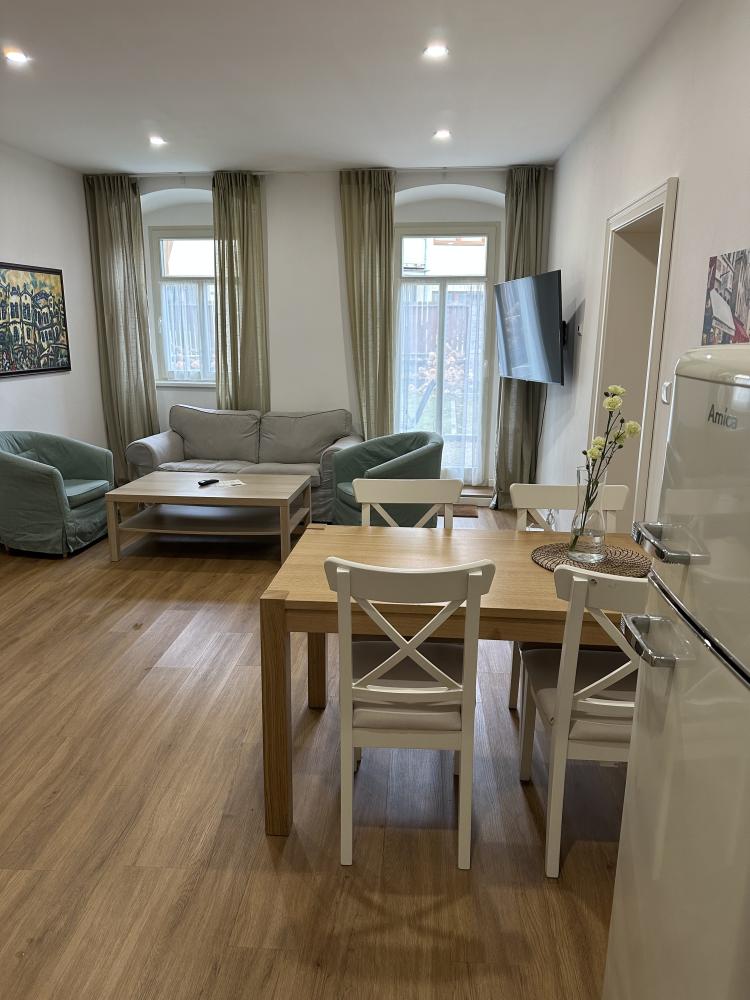 Apartmány Tachov nabízejí ubytování v Dolním předměstí. Díky své poloze v centru města je apartmán Ground floor snadno dostupný a zároveň nabízí klidné prostředí pro relaxaci. Tento apartmán poskytuje komfortní ubytování s kapacitou pro tři osoby. Jeho poloha v přízemí zajišťuje snadný přístup a pohodlí pro všechny hosty. Prostorný apartmán s vybavenou kuchyní, jídelním koutem, obývacím pokojem, dvěma ložnicemi a