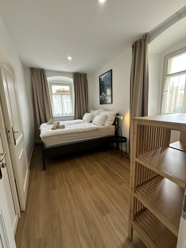 Apartmány Tachov nabízejí ubytování v Dolním předměstí. Díky své poloze v centru města je apartmán Garden house snadno dostupný a zároveň nabízí klidné prostředí pro relaxaci. Luxusní apartmán v přízemí domu s vybavenou kuchyní, jídelním koutem, obývacím pokojem se vstupem na prostornou terasu, dvěma ložnicemi s vlastními koupelnami a se sprchovými kouty. V domě je také k dispozici pračka a sušička. Na přilehlé zahradě mohou hosté využit uzamykatelnou kolárnu a posezení.