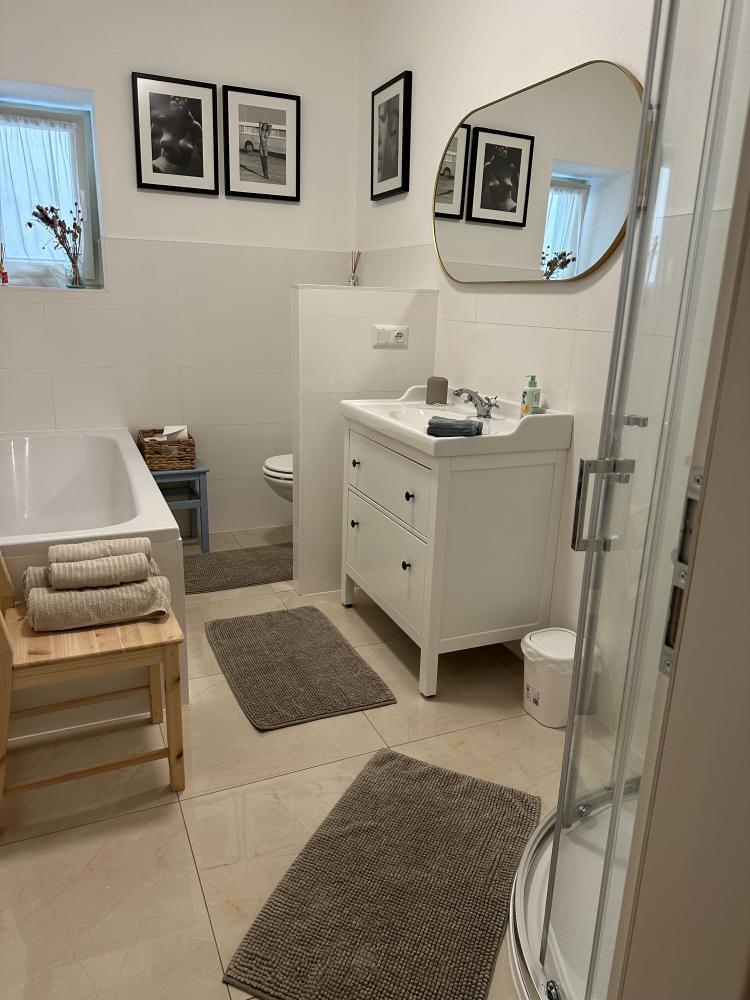 Spacious apartment with equipped kitchen, dining area and living room. Two bedrooms, bathroom with bathtub and shower.